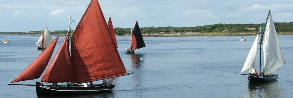 Cruinniú na mBád, Kinvara was founded by Tony Moylan in 1979 as a celebration of the traditional commerce that existed between the coasts. In August at Kinvara you can see the mighty Hookers in action once again. Some of the vessels are over 150 years old, others newly built. Many of the families who sail the hookers have been doing so for generations – the O’Brien’s, Bailey’s and McDonaghs and the Jennings and Joyces are old hands at sailing these traditional craft. The Caseys, Clohertys and Mulkerrins built hookers at Mweenish, and the Brannellys and Keanes constructed the vessels in Kinvara.